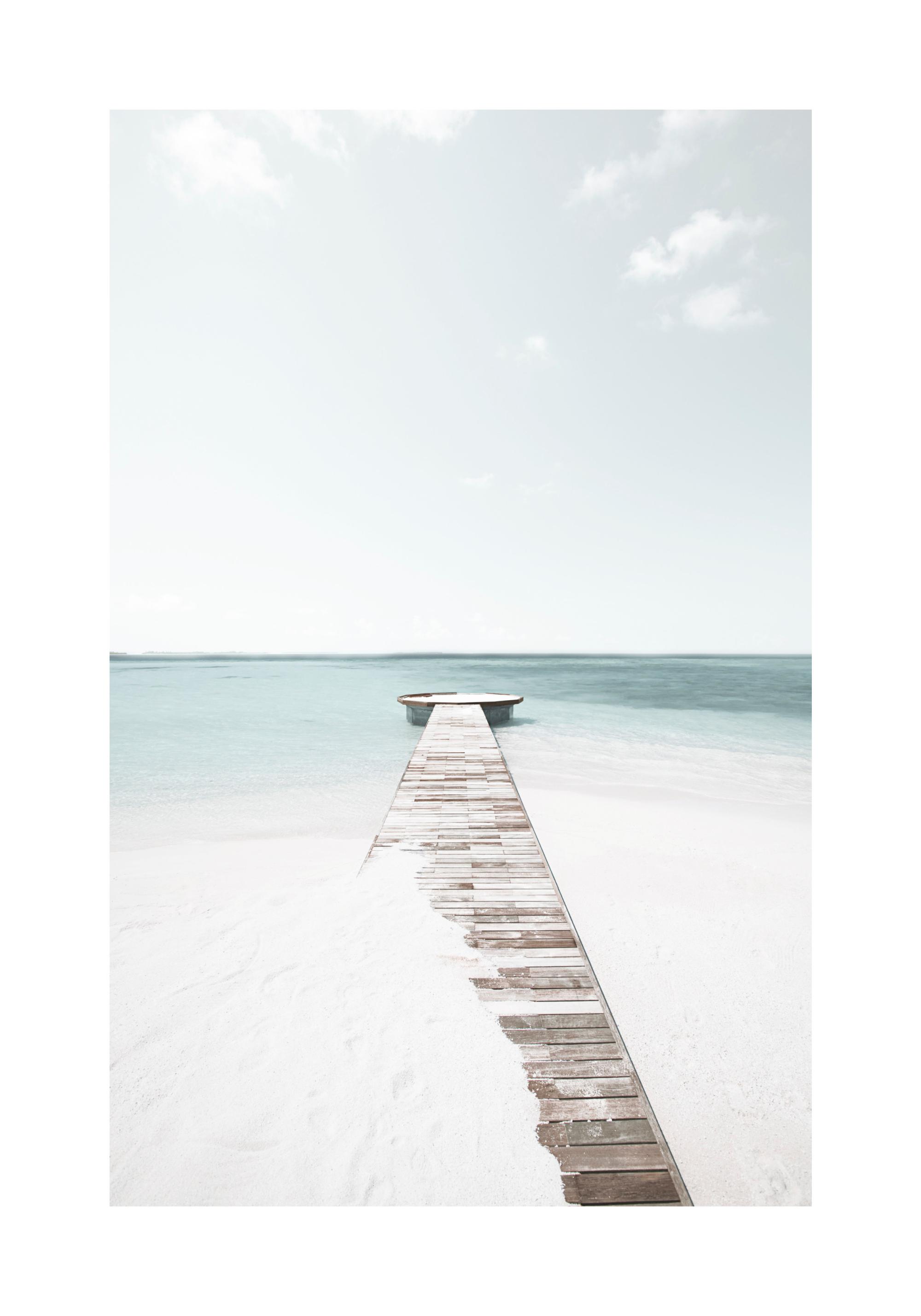 From €7.77A calming landscape poster of a long jetty leading from the beach out to sea. The luminous sky and the turquoise water meet and form an endless expanse. Get energized with this mindfulness poster and feel free and wonderful.